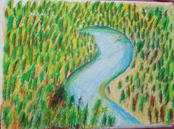 Judge’s comments: Very effective portrayal of a depressing, sad mood using light, shadow and texture. The perspective, sense of space, distance and anatomy of the character all need major work and improvement but the expressiveness of this piece affects the viewer directly and sharply. It is an artwork that will linger around in our hearts for a long time after viewing.